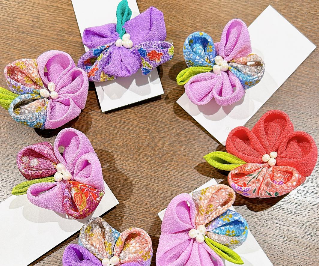 約200年前に江戸で誕生し、伝統工芸に指定されているつまみ細工。その技法を使って、お花のクリップ式ブローチを作ります。約6cmのちりめん生地を折り紙のように折って、楽しく仕上げていきます。※写真のお花以外に、季節に合わせたお花を作ることが可能です。ご相談ください。※指を動かすことが難しい方は、事前に布を折りたたみ、花びらの状態でお持ちすることも可能です。土台に花びらを貼り付ける作業を体験していただきます^^