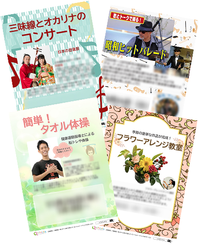 レク開催の​案内チラシ 「施設側で​作成が​必要なので​手間が​かかる」 弊社サイトから​無料で​ダウンロードできる
